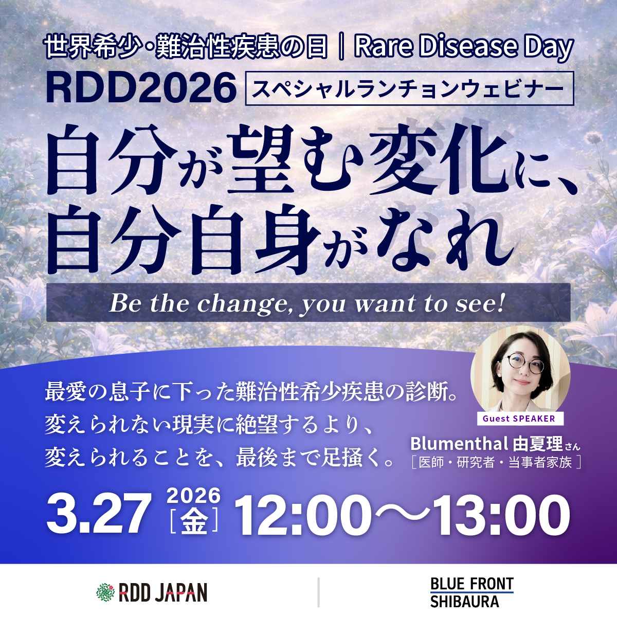 その両方を経験したブルーメンタルさんだからこそ語れる、希少疾患とともに生きる現実と希望。このウェビナーでは、由夏理さんの体験を通じて「知ること」から始める一歩を皆さんと共有します。